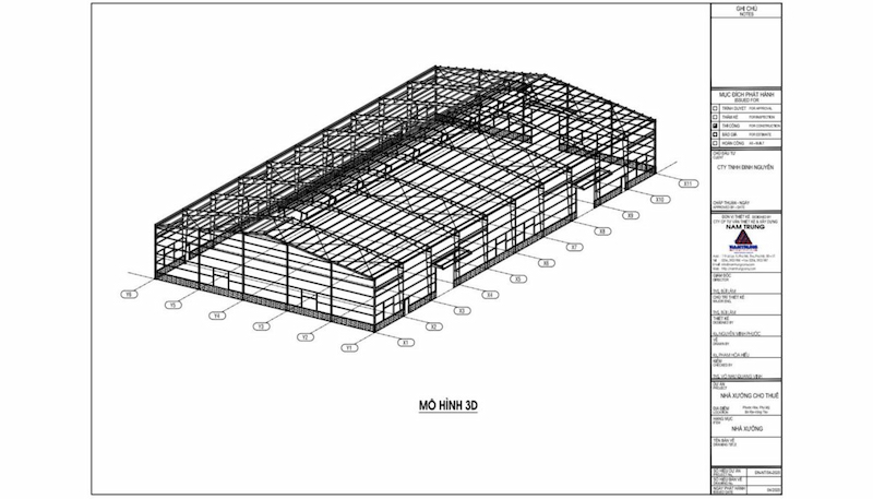Bản vẽ cần thể hiện rõ các thông số kỹ thuật của nhà xưởng, vật liệu cấu tạo thép và các tiêu chuẩn đảm bảo đủ điều kiện thi công.